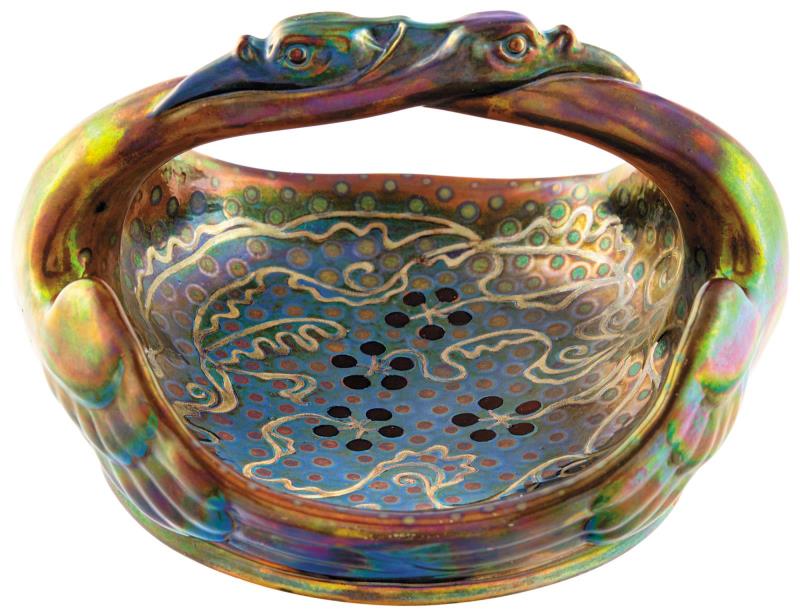 Hattyú alakú kínáló, bogyós növény díszítésével az öblében, 1907 körül
