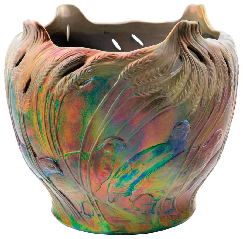 Virágtartó edény, búzamezőben lépdelő fürjekkel, 1906, Formaterv: Apáti Abt Sándor, 1905. VII. 29.