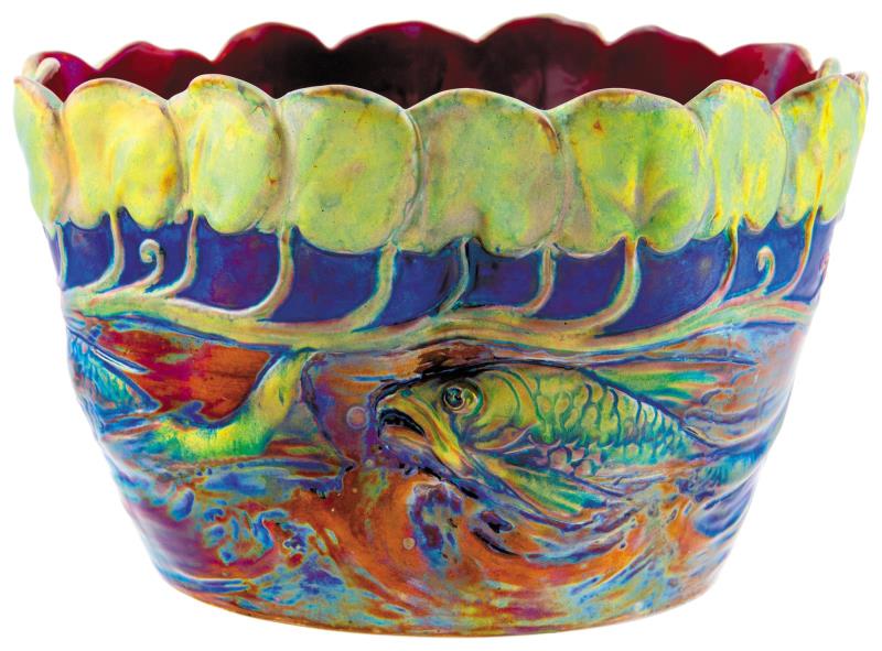 Virágtartó edény, halakkal, vízinövényekkel, 1899