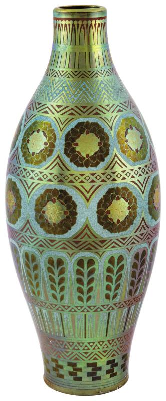 Váza, egyiptizáló dekorral, 1925 körül, Dekorterv: Mattyasovszky Jakabné Zsolnay Teréz