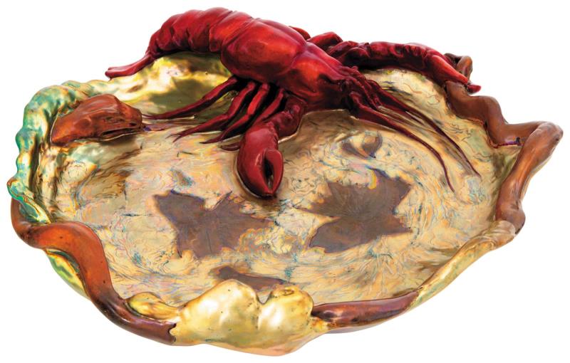 Tál, rákkal küzdő kígyó plasztikájával, 1900, Formaterv: Kapás Nagy Mihály, 1900