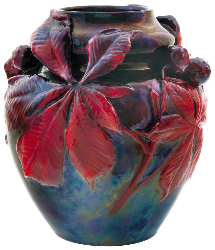 Virágedény, gesztenyeágas reliefmintázattal, 1900, Formaterv: Mack Lajos