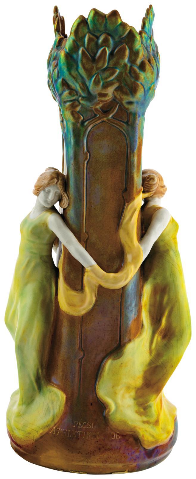 Váza, fák körül táncoló nőalakokkal, 1900, Formaterv: Mack Lajos