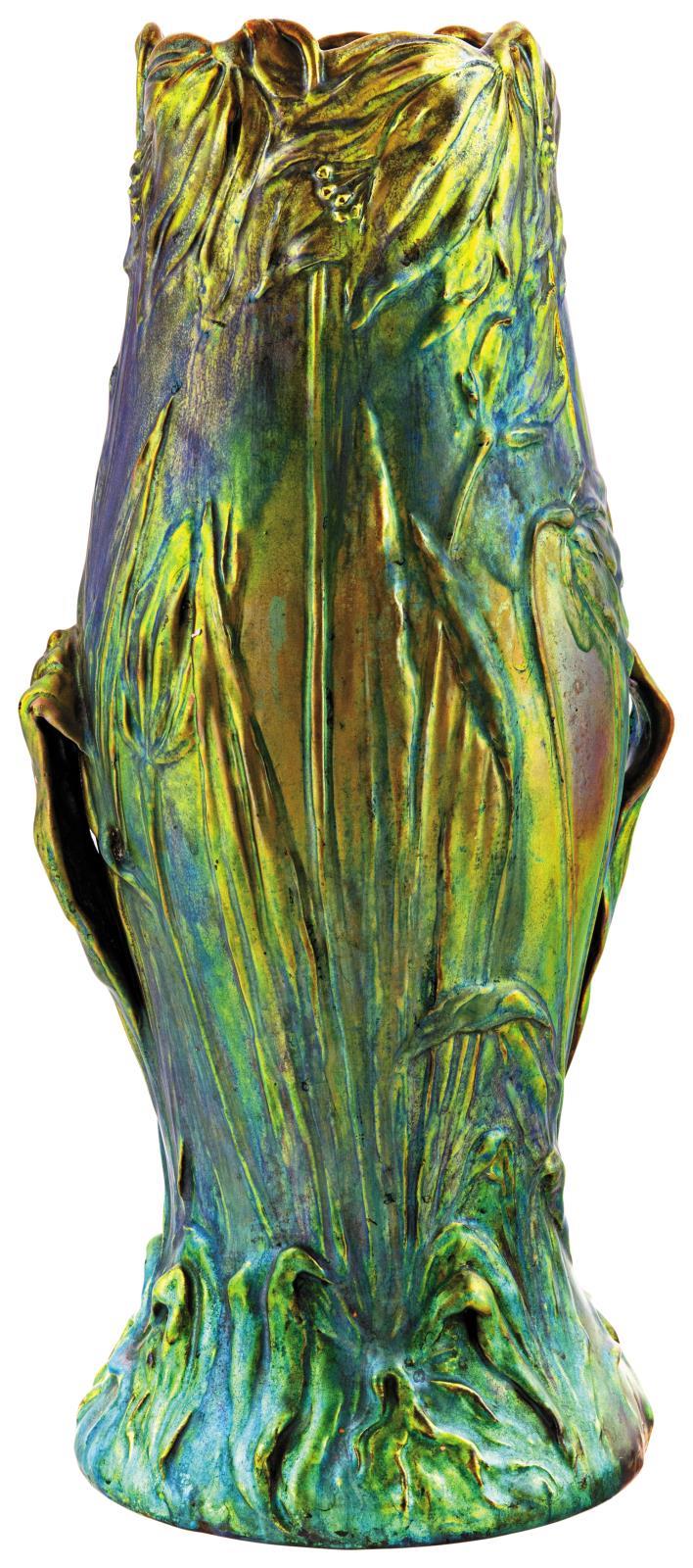 Váza, sásliliomokat ábrázoló reliefmintával, 1899, Formaterv: Kapás Nagy, Mihály