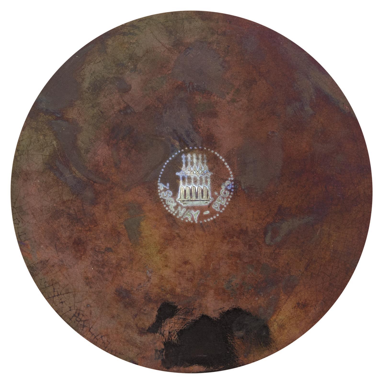 Jelzés: masszába nyomott ZSOLNAY PÉCS márkajelzés, 5465, M, eozinnal pecsételt öttornyos, pontkörös márkajelzés