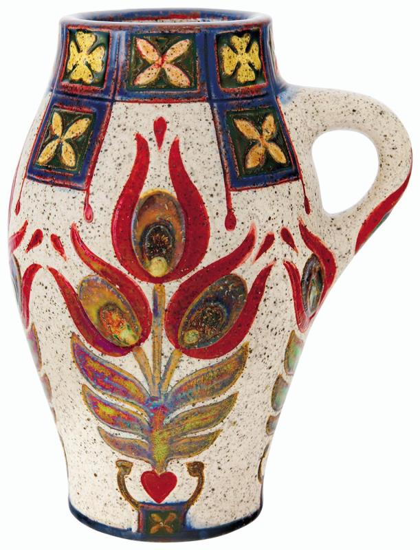 Szűrmintával díszített kancsó, a grès-sorozatból, Zsolnay, 1904