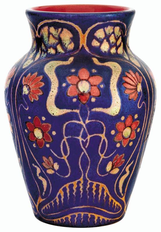 Váza, szimmetrikus virágdíszítéssel, Zsolnay, 1899