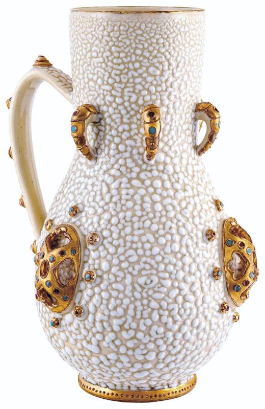 Tigermázas kancsó, ékszertechnikával díszítve, Zsolnay, 1890-es évek