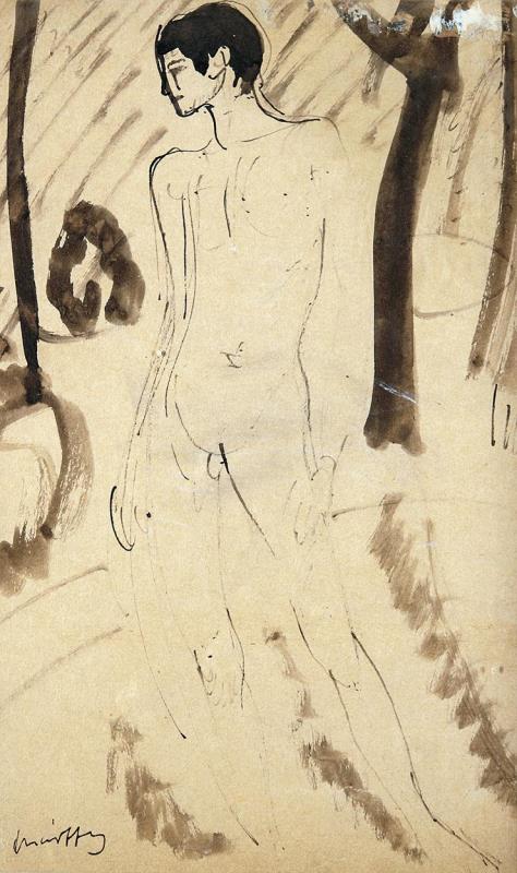 Lavírozott tus, papír