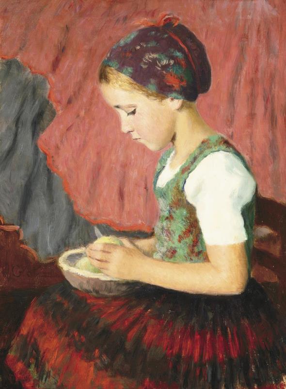 Almát hámozó kislány