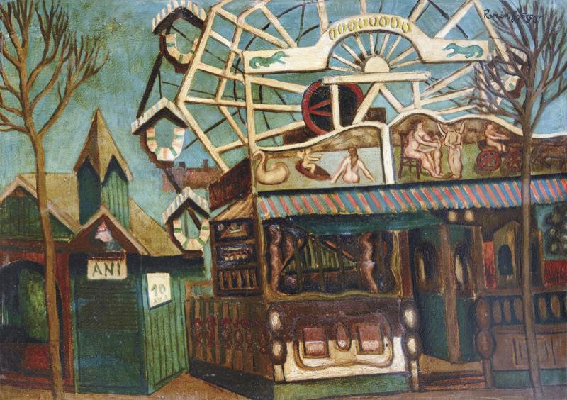 Hátoldalon felirat: Román György Óriáskerék kompozíció