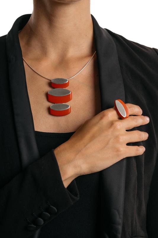 anamorfikus ékszerkollekció ( ellipszis), gyűrű és nyakék