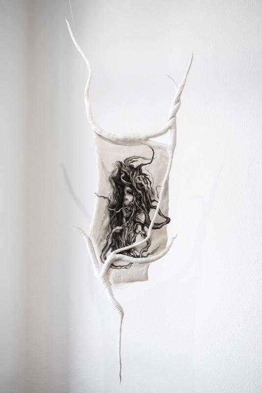 latex, pamutcérna, tollrajz, lakk, vatelin, vászon