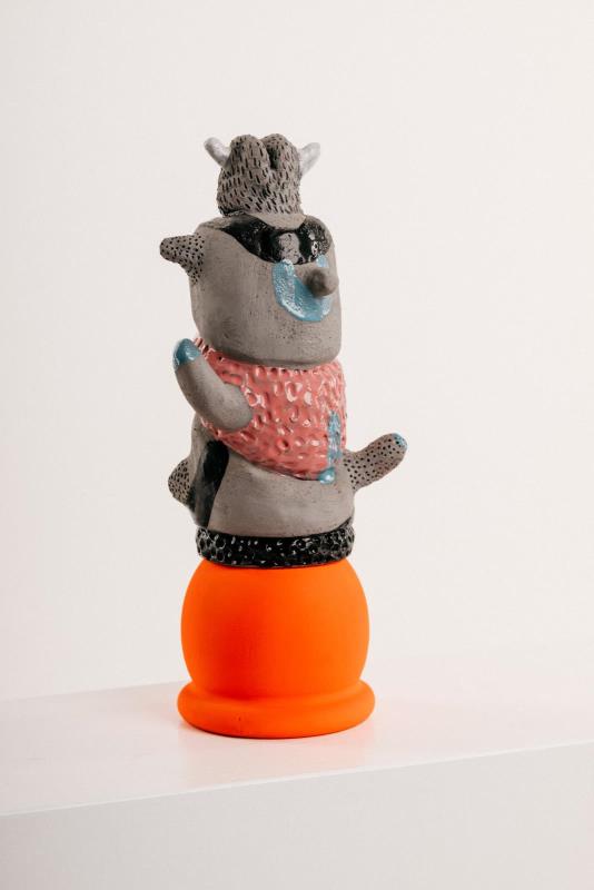 agyag, máz, festett fa