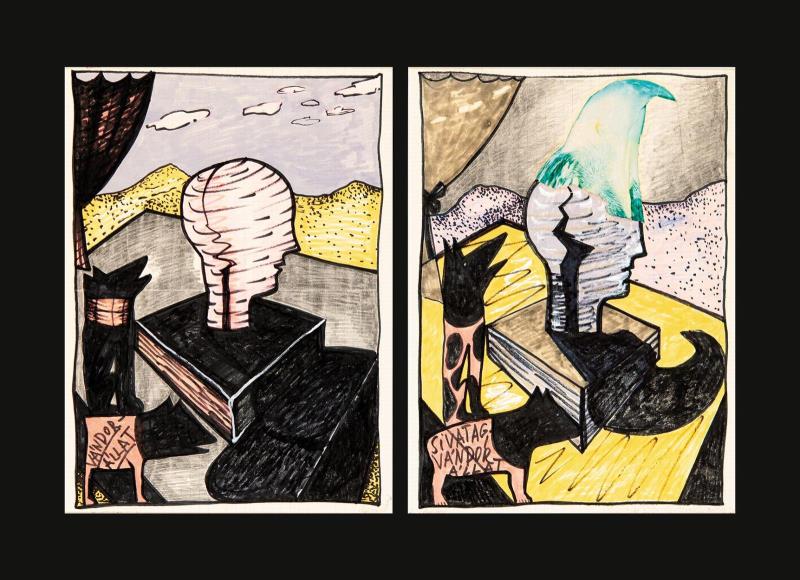 Kollázs, tempera, filctoll, papír