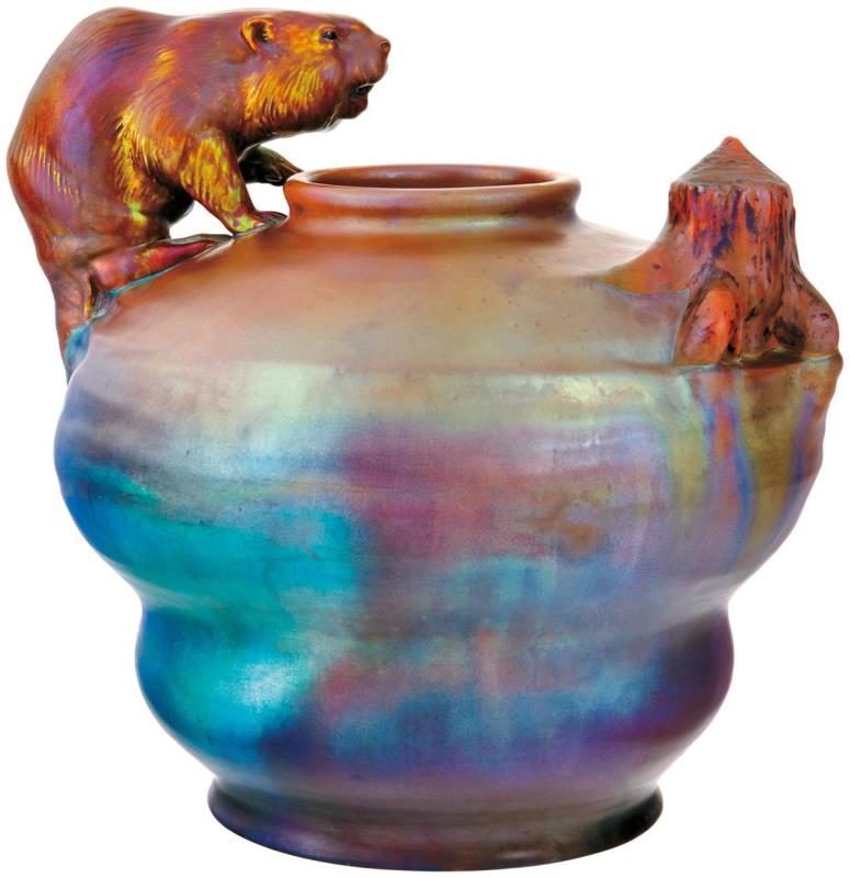 Váza, hódfigurával, 1900, FORMATERV: APÁTI ABT SÁNDOR