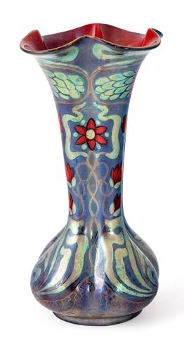 Gerezdelt váza, szimmetrikus virágdísszel, Zsolnay, 1898-1899