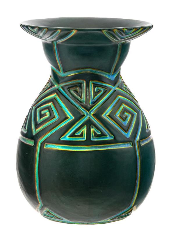 Váza, bemélyített geometrikus díszítménnyel, Zsolnay, 1907, Terv: Apáti Abt Sándor