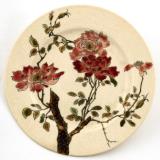 Tányér, peóniaágas díszítménnyel, 1882, Dekorterv és kivitel: Zsolnay Júlia