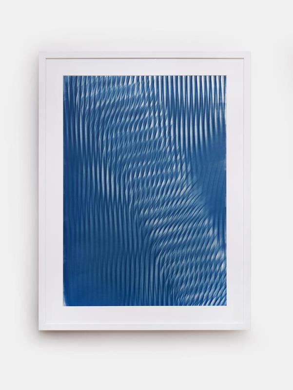 üveg rudakkal készült egyedi cianotípia, múzeum üveggel keretezve