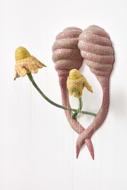 rozsdamentes acél, üvegmozaik, polisztirol, építési ragasztó, cérna, textilfesték, szövet, üvegszálas háló, cementfuga