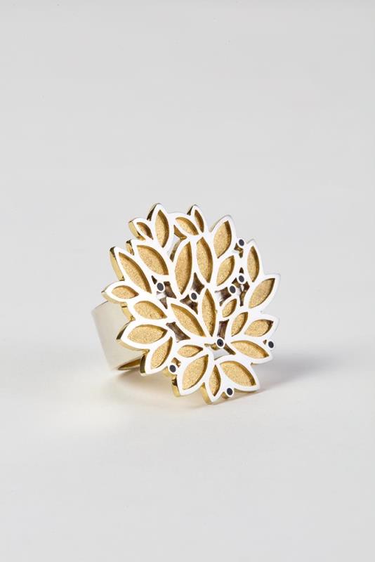 ezüst, 24 karátos aranyozott felület, színezett fekete műgyanta