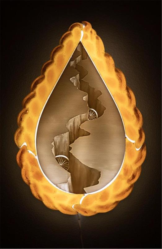 3D-nyomtatott digitális litofán, PLA szál, fenyőgyanta, LED szalag