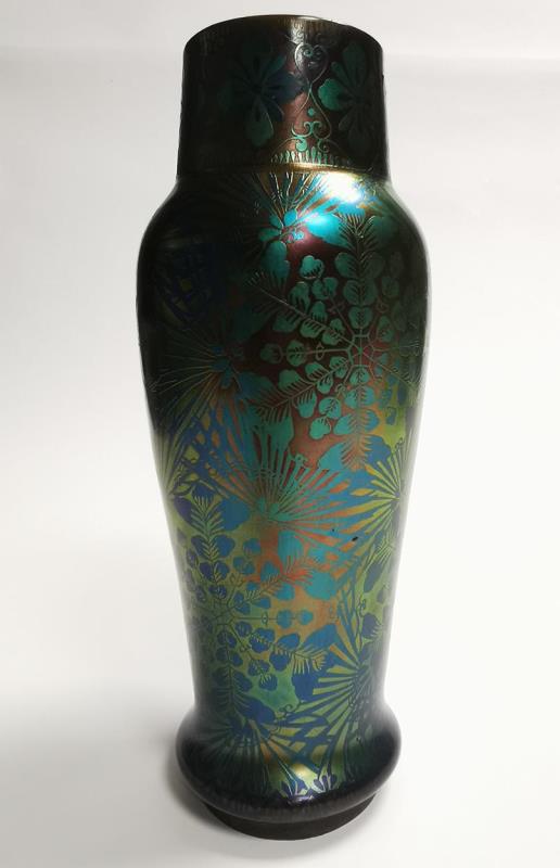 Váza, szimmetrikus, stilizált növényi díszítéssel, Zsolnay
