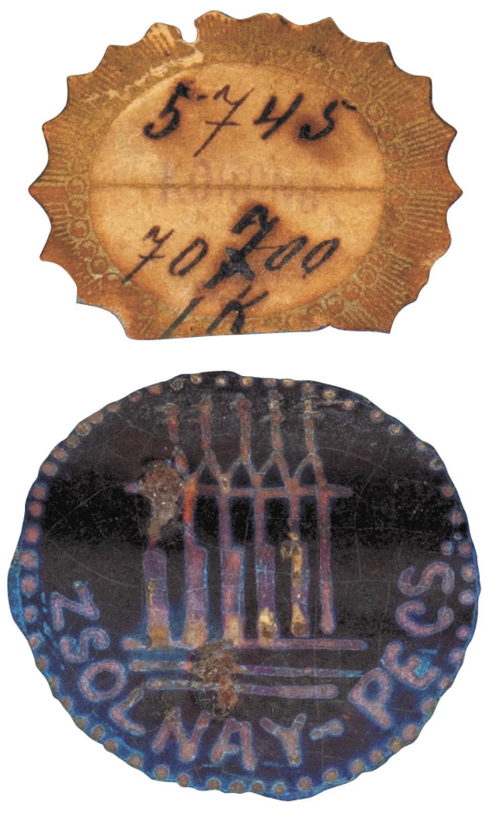 Jelzés: máz alatt pecsételt öttornyos márkajelzés pontkörben, ovális gyári papírcímke fazonszám és rejtjeles