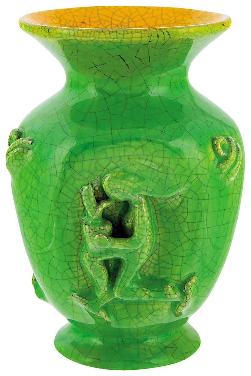 Reliefdíszes váza, gyermekét tartó nő figurájával, Nógrádverőce, 1927-1928; Formaterv: Gorka Géza