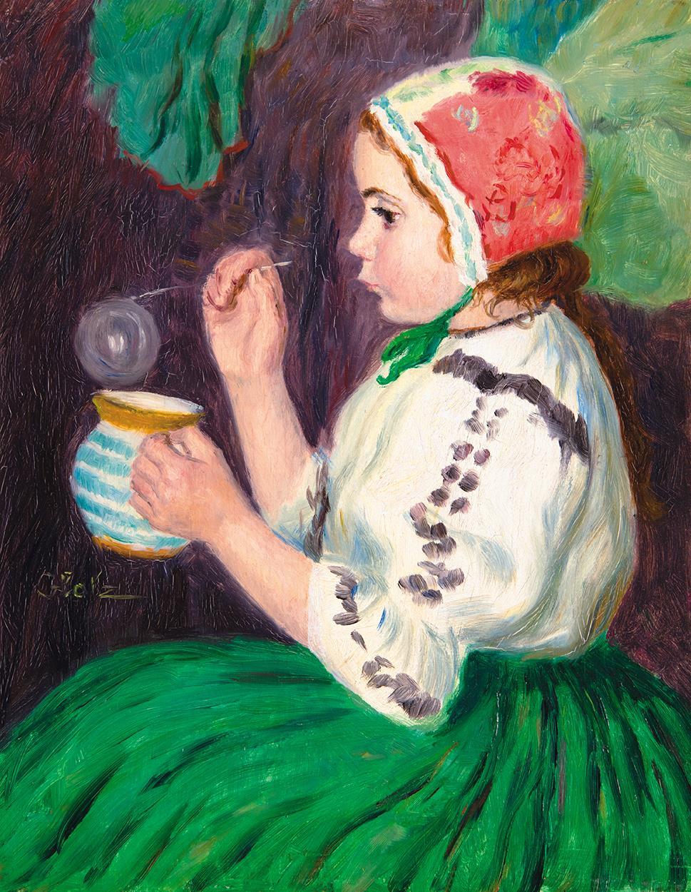 Buborékfújó leány