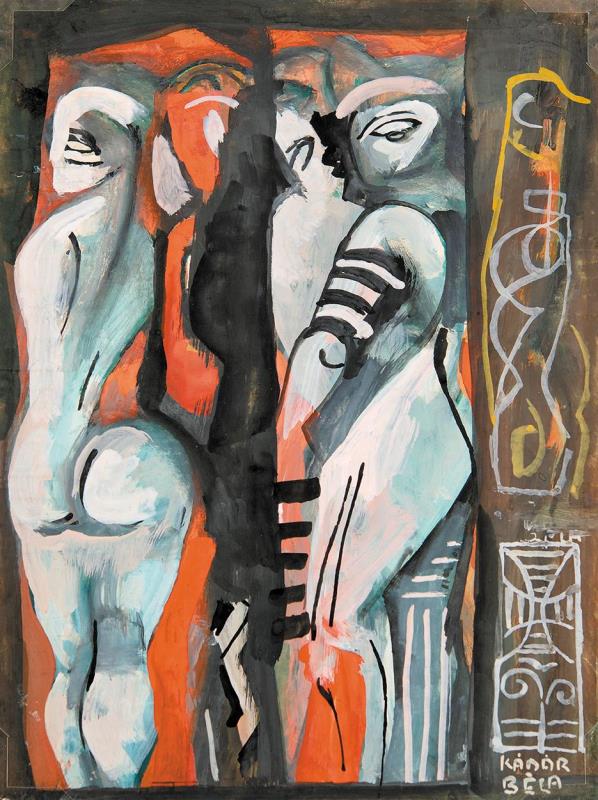 Két álló alak; Hátoldalon: Fekvő lány akt