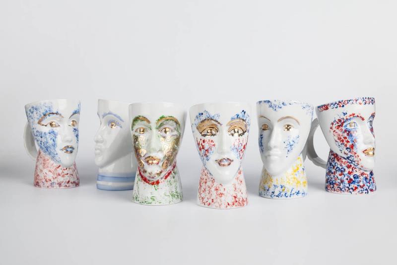 6db egyedi, kézzel festett porcelán csésze | A Mosoly Aukció műtárgyaira vonatkozó vételi megbízások esetén nem kerül felszámolásra a 20%-os jutalék összege, kérjük hagyja figyelmen kívül a kiírást.