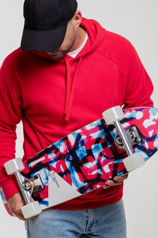 Gördeszka lap: laminált juhar furnér, 2 réteg vízbázisú lakkal + grip tape (öntapadós csúszás gátló). Hardware: Independent tengely (fém) és Cruiser kerék csapággyal