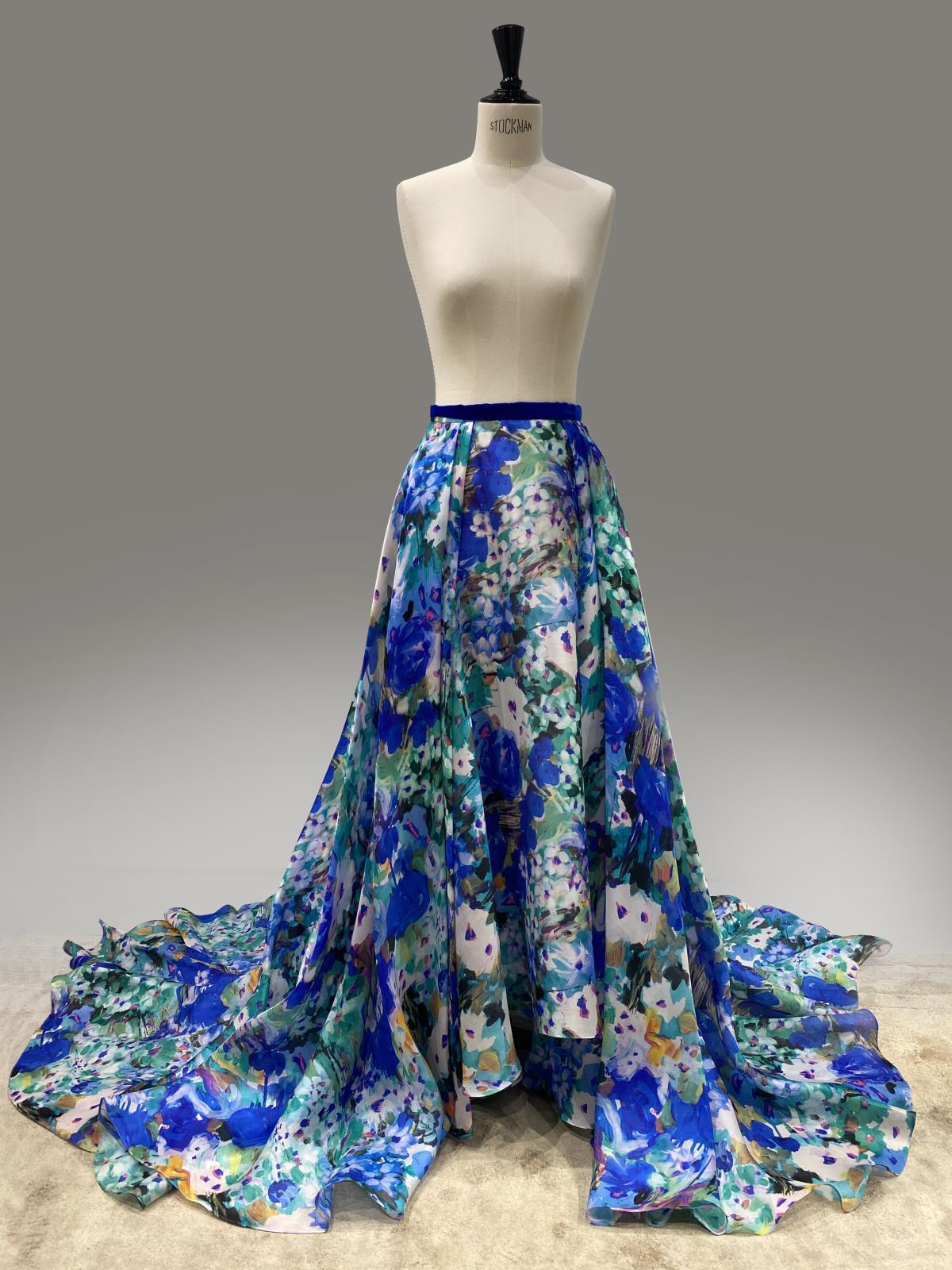 A szoknya mérete 36-os/S-es, 64 cm-es derékbőségre szabott. A szoknya hossza elöl, illetve az uszály hossza igény szerint igazítható. A szoknya hossza elöl középen 95 cm, az uszály hossza 170 cm