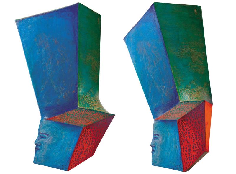 Jelezve hátoldalon: Szurcsik József 1139 Bp Máglya utca Zélosz akril-olaj-vászon 107 x 60 x 18 1999