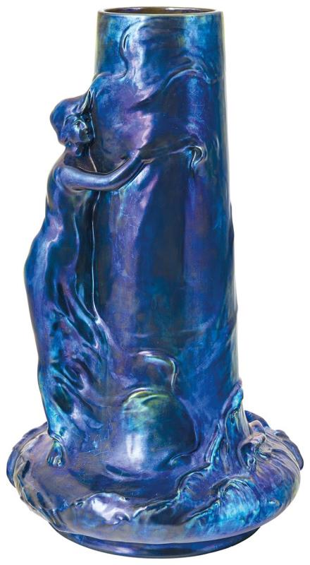 Váza, viharban várakozó nőalakkal, Zsolnay, 1900