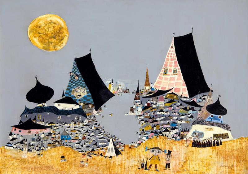 Jelezve jobbra lent: Bornemisza 978; Hátoldalon felirat: Bornemisza László: Északi város 70 x 100 cm 1978.