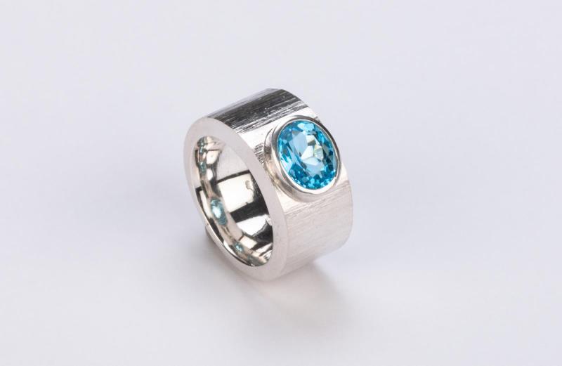 Rusztikus felületű kéktopáz gyűrű, 2021
