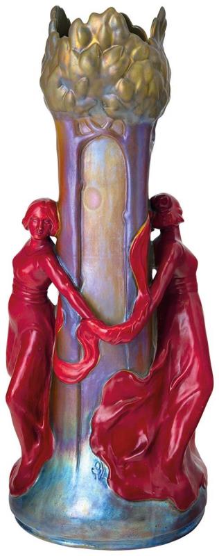 Váza, fák körül táncoló nőalakokkal, Zsolnay, 1900