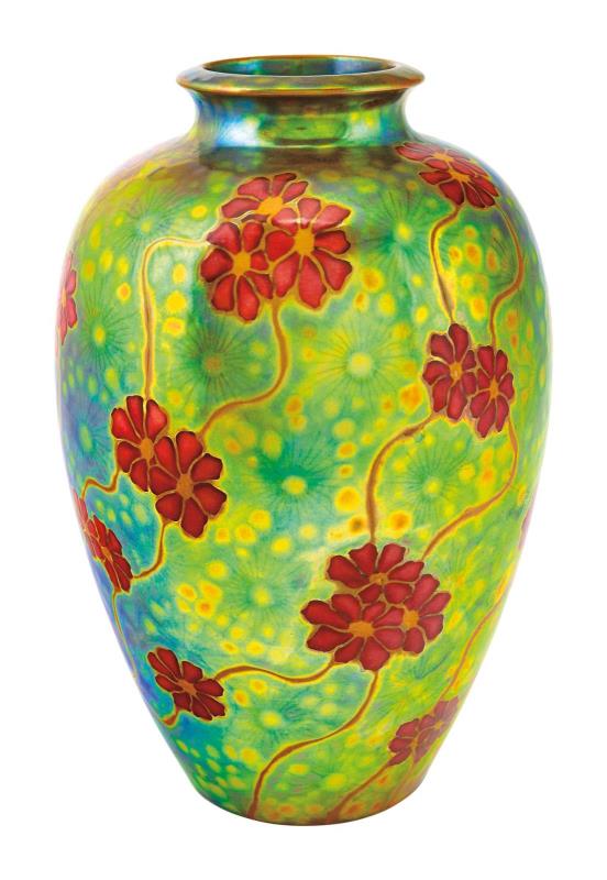 Váza, virágos mező mintájával, Zsolnay, 1902 körül
