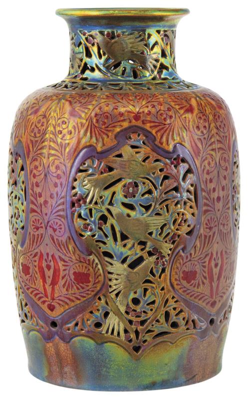 Áttört, paradicsommadaras váza, 1905, FORMATERV: DAŘILEK HENRIK