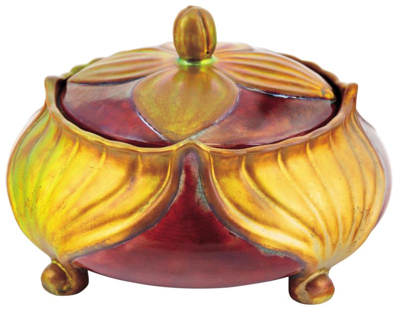 Bonboniére, plasztikus, tavirózsás díszítménnyel, 1899 körül