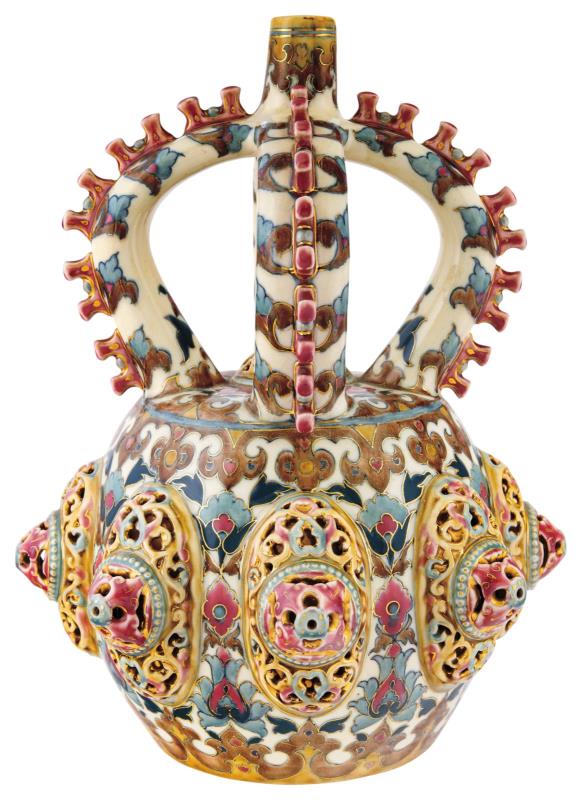Díszedény, koronás füllel, rozettákkal, 1886