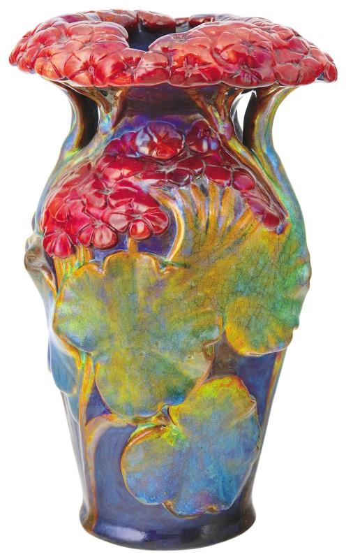 Váza, plasztikus, muskátlis díszítéssel, 1900