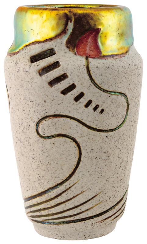 Váza a grés-sorozatból, stilizált, tulipános díszítéssel, 1903, APÁTI ABT SÁNDOR TERVE