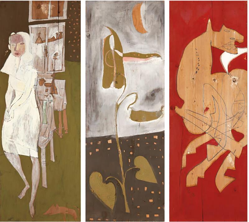 Jelezve hátoldalon (mindhárom művön): O. Papp Gábor "Szentendrei triptikon" Jelezve középen lent (a 3. művön) PG 76