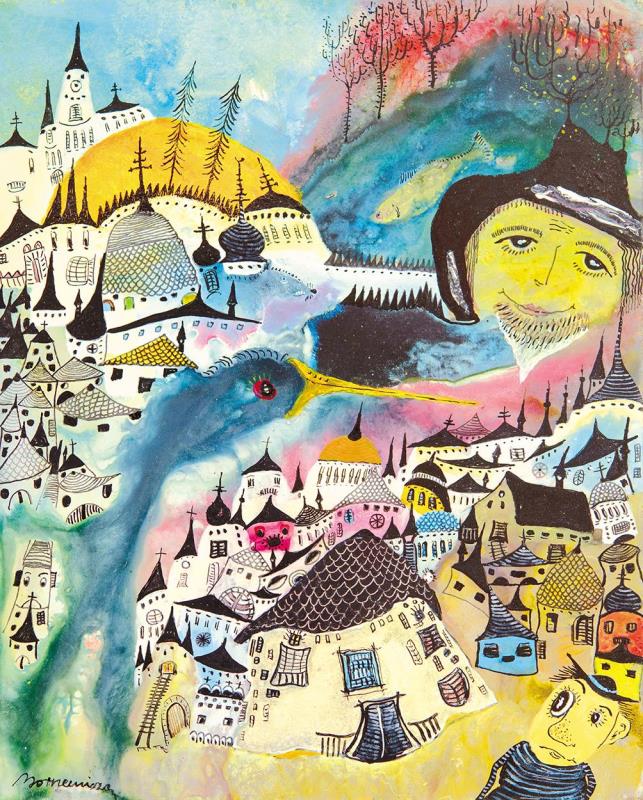 Kócsag a város felett