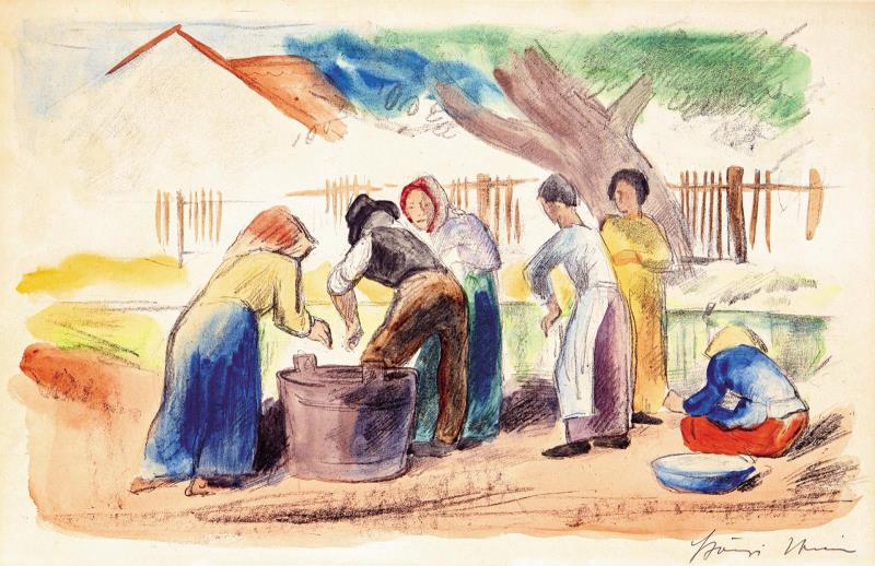 Akvarellel színezett litográfia, papír