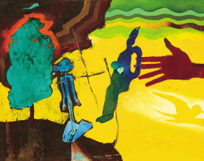 Jelezve középen lent: Wahorn 77 Találka a dombon Hátoldalon autográf felirat: Találka a dombon Wahorn András
